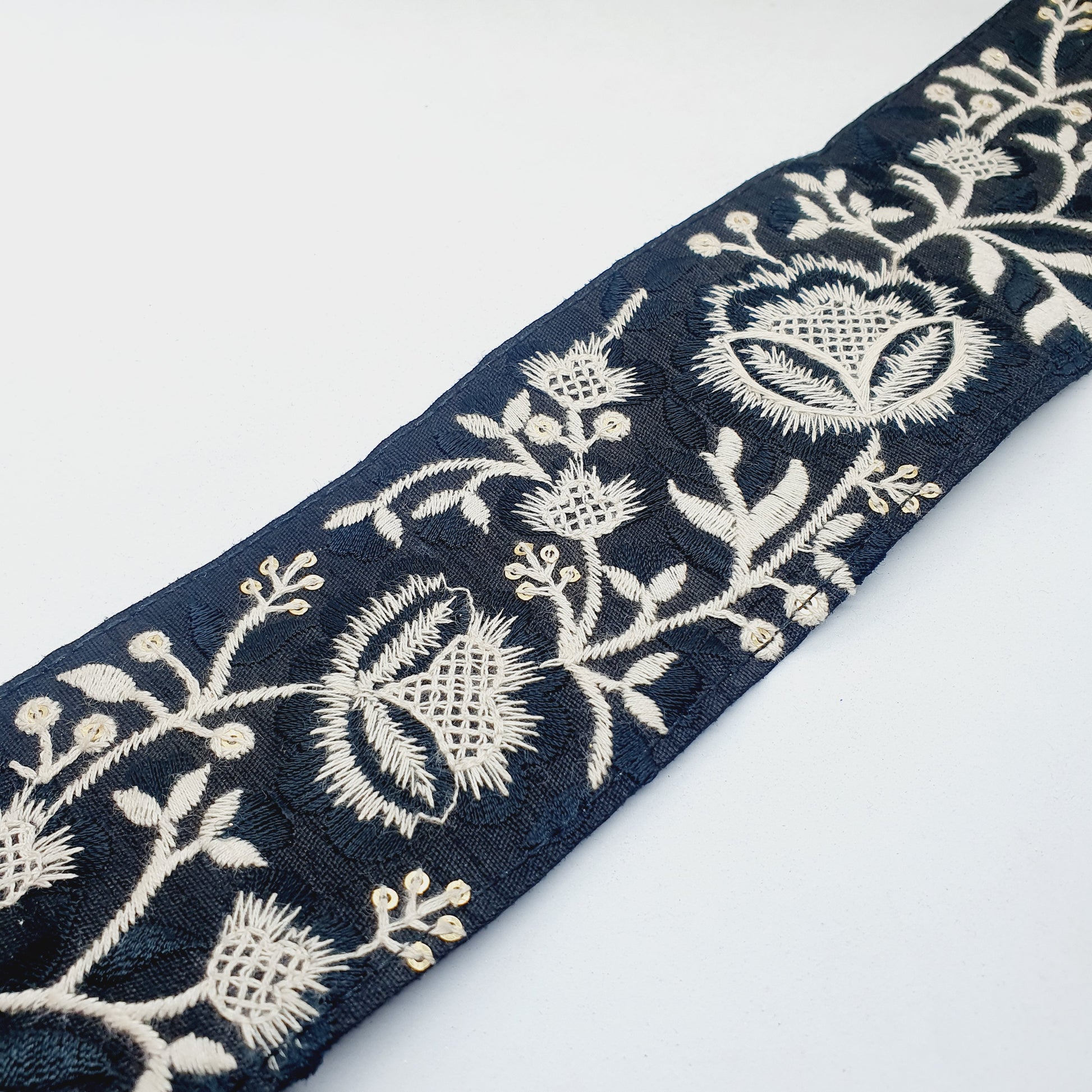 1m 7.5cm black cream flower indian embroidered saree border ribbon