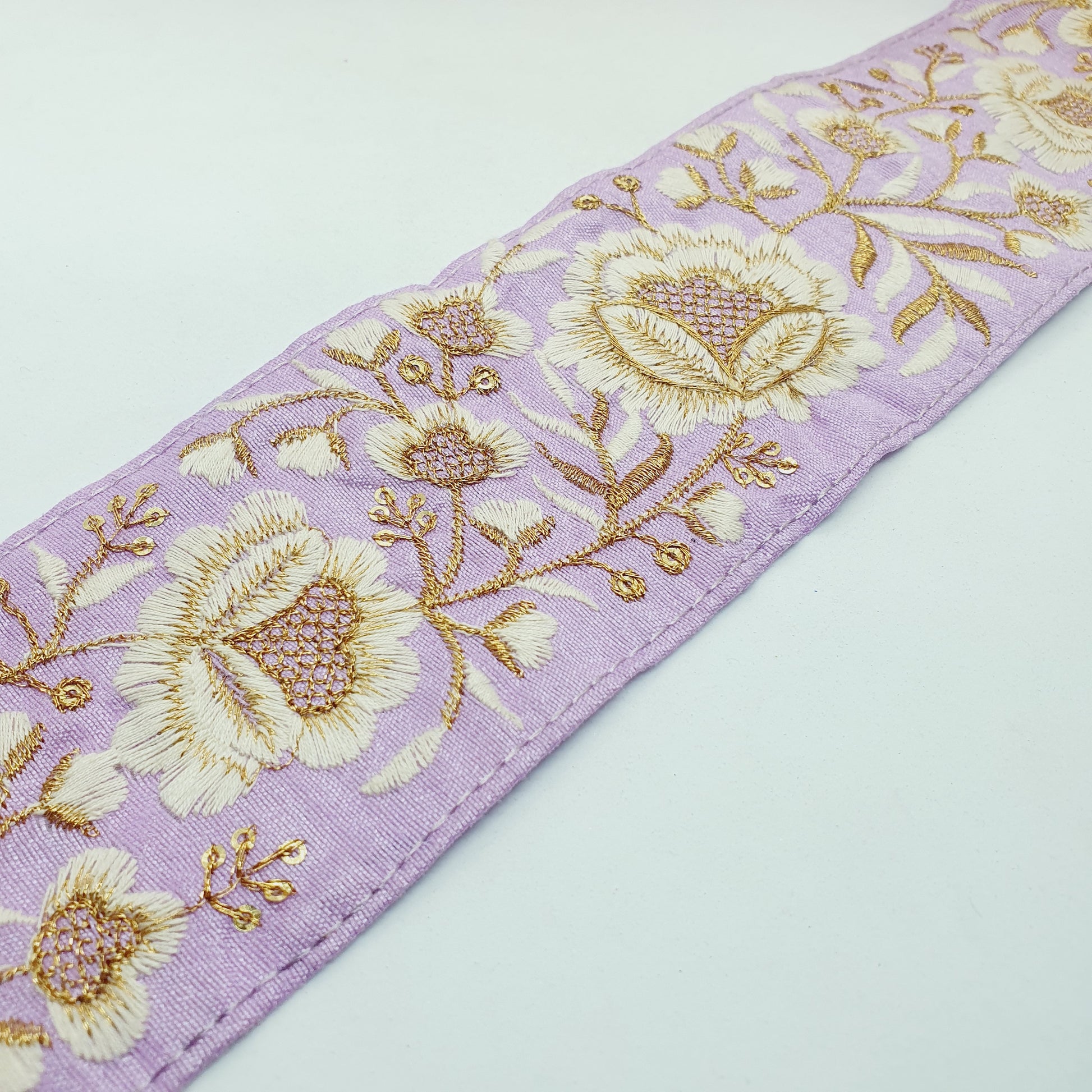 1m 7.5cm lilac cream deep gold flower indian embroidered saree border ribbon