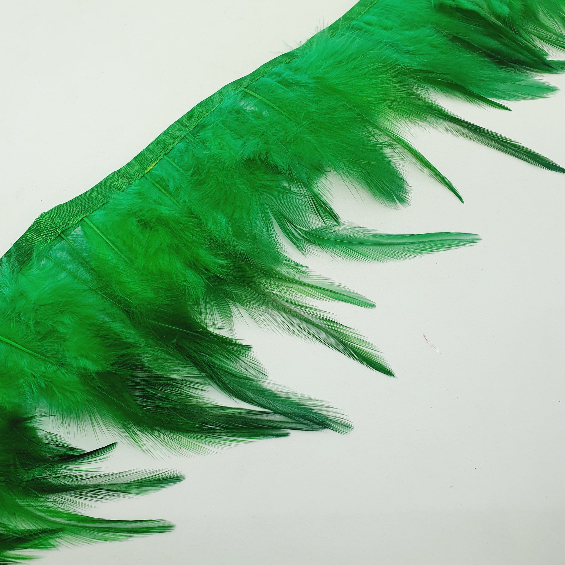 Be the centre of attention with this stunning 1m emerald green rooster feather trim! Perfect for any dance, costume or fashion project. Achieve the wow factor with the 8-11cm size and vibrant colour, creating a show-stopping look. Craft that unforgettable impression with this perfect fringe trim!