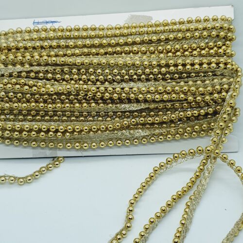 A lovely braid with gold beads. Indulge in the luxurious touch of our 1m gold bead braid trimming! With a width of 12mm and a length of 1 meter, this braid is crafted to add a touch of elegance to any project. The shining gold beads will instantly elevate any piece, making it a must-have for any crafter or designer. Don't settle for ordinary trims, choose our gold bead braid for a touch of opulence and style.