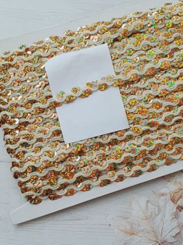 A beautiful braid trim with gold hologram sequins on corded white trim with glitter. This is very beautiful in the flesh and would be stunning on clothing or soft furnishing.