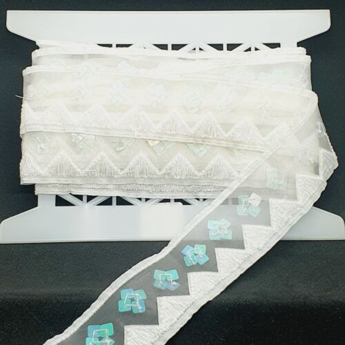 1m ivory ribbon AB pesrly bead sequin trim 50mm