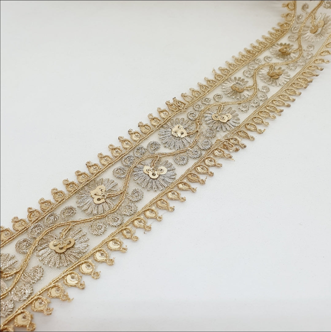 1m light gold embroidered ribbon with sequins and braid 5cm