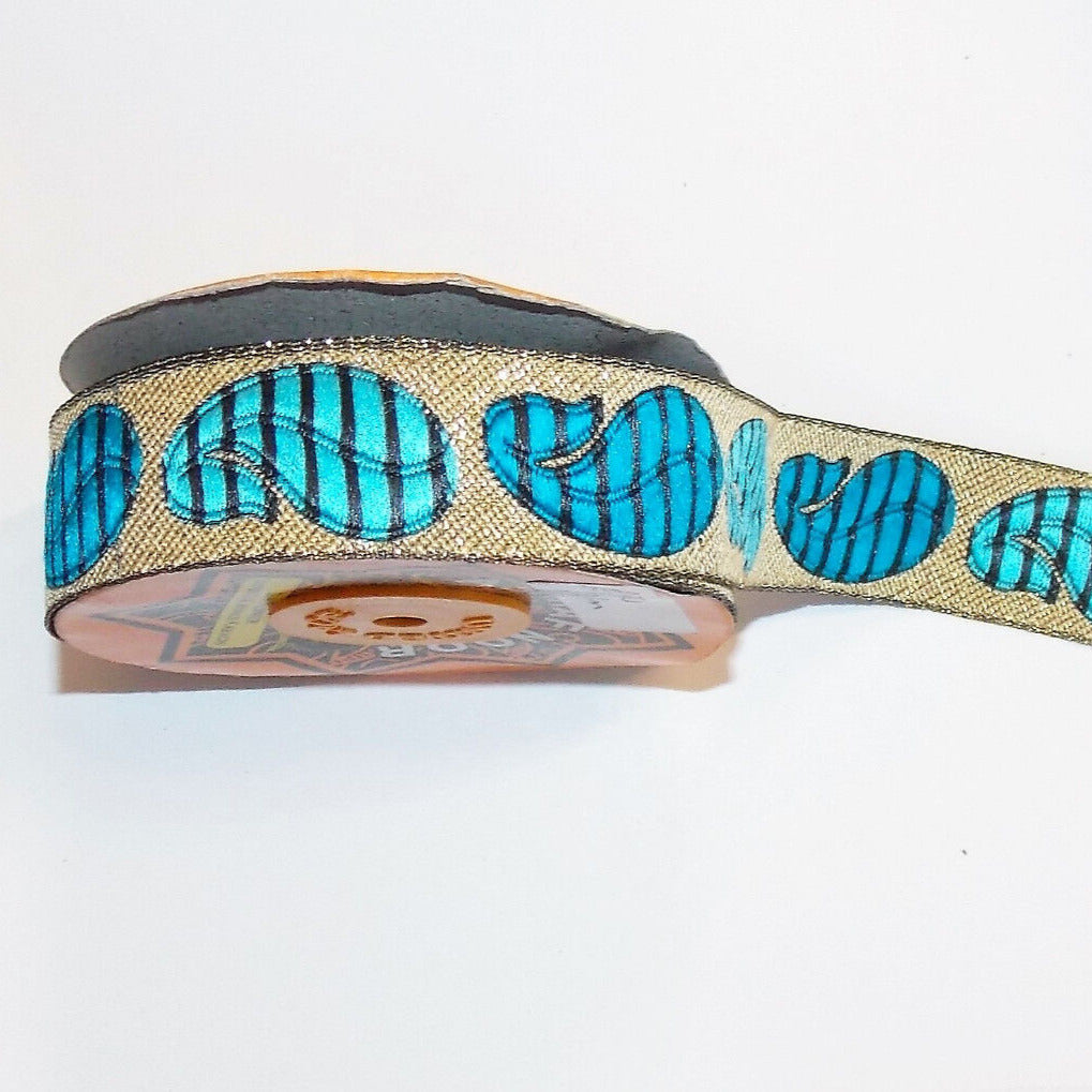 1m paisley turquoise blue beige gold jacquard embroidered ribbon 25mm