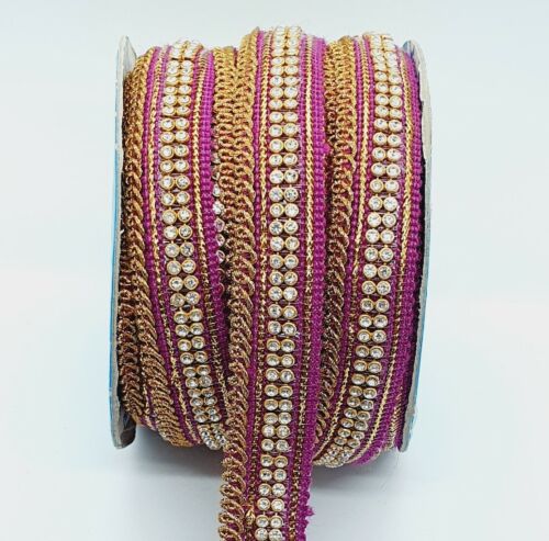 1m pinky purple crystal embroidered ribbon braid 20mm