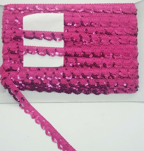 A beautiful braid trim with pink sequins on a matching base. This is very beautiful in the flesh and would be stunning on clothing or soft furnishing. Transform any outfit into a work of art with pink sequin trimming. Elevate your wardrobe, or add a touch of luxury to your home décor. The mesmerizing sequins will catch the light and delight your senses.