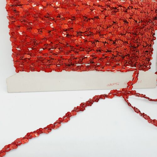 A beautiful glitter braid trim with red sequins. This is very beautiful in the flesh and would be stunning on clothing or soft furnishing. Add a touch of glamour and sparkle to any project with our 1m red glitter sequin braid trimming ribbon! Perfect for adding a pop of colour and shine to clothing or soft furnishings, this beautiful trim is sure to make a statement. Don't settle for ordinary when you can make a bold and stylish statement with our stunning red glitter sequin trim.