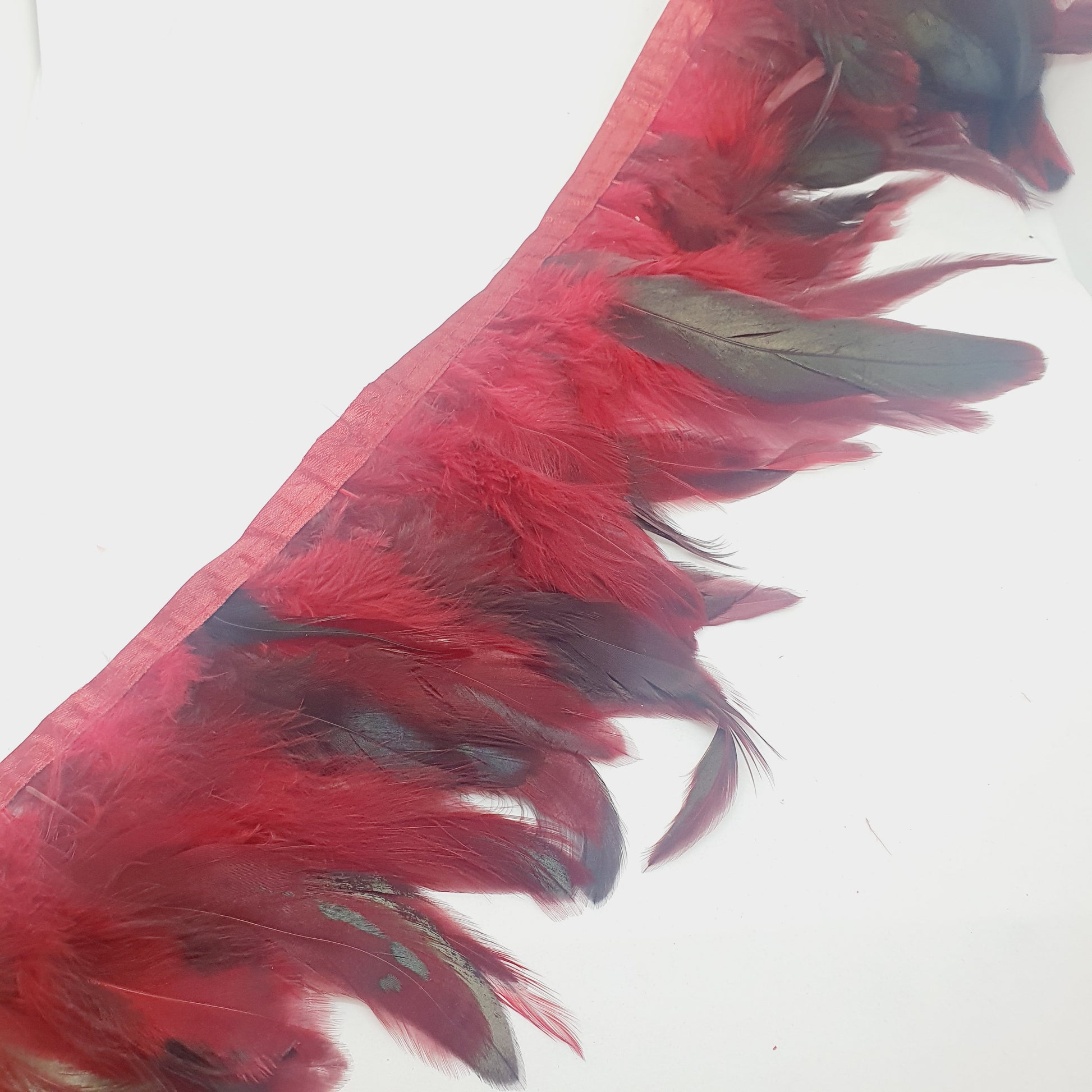 Be the centre of attention with this stunning 1m wine and black rooster feather trim! Perfect for any dance, costume or fashion project. Achieve the wow factor with the 13-18cm size and vibrant colour, creating a show-stopping look. Craft that unforgettable impression with this perfect fringe trim!