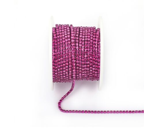 A close set crystal cup chain with brilliant cut rose pink rhinestones set in a matching colour chain. Brilliant cut stones give off amazing sparkle and these don’t disappoint!