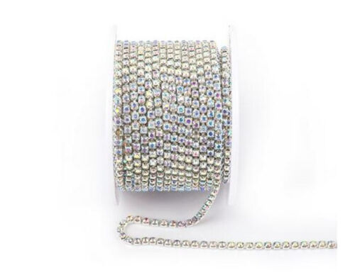 1m ss12/ 3mm close cup Crystal Rhinestone Chain SILVER AB