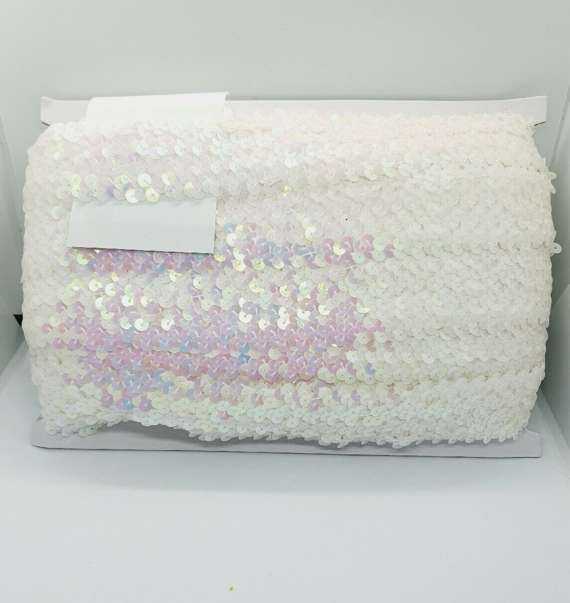 1m white AB sequin Stretch elastic Elasticated 4cm Trim