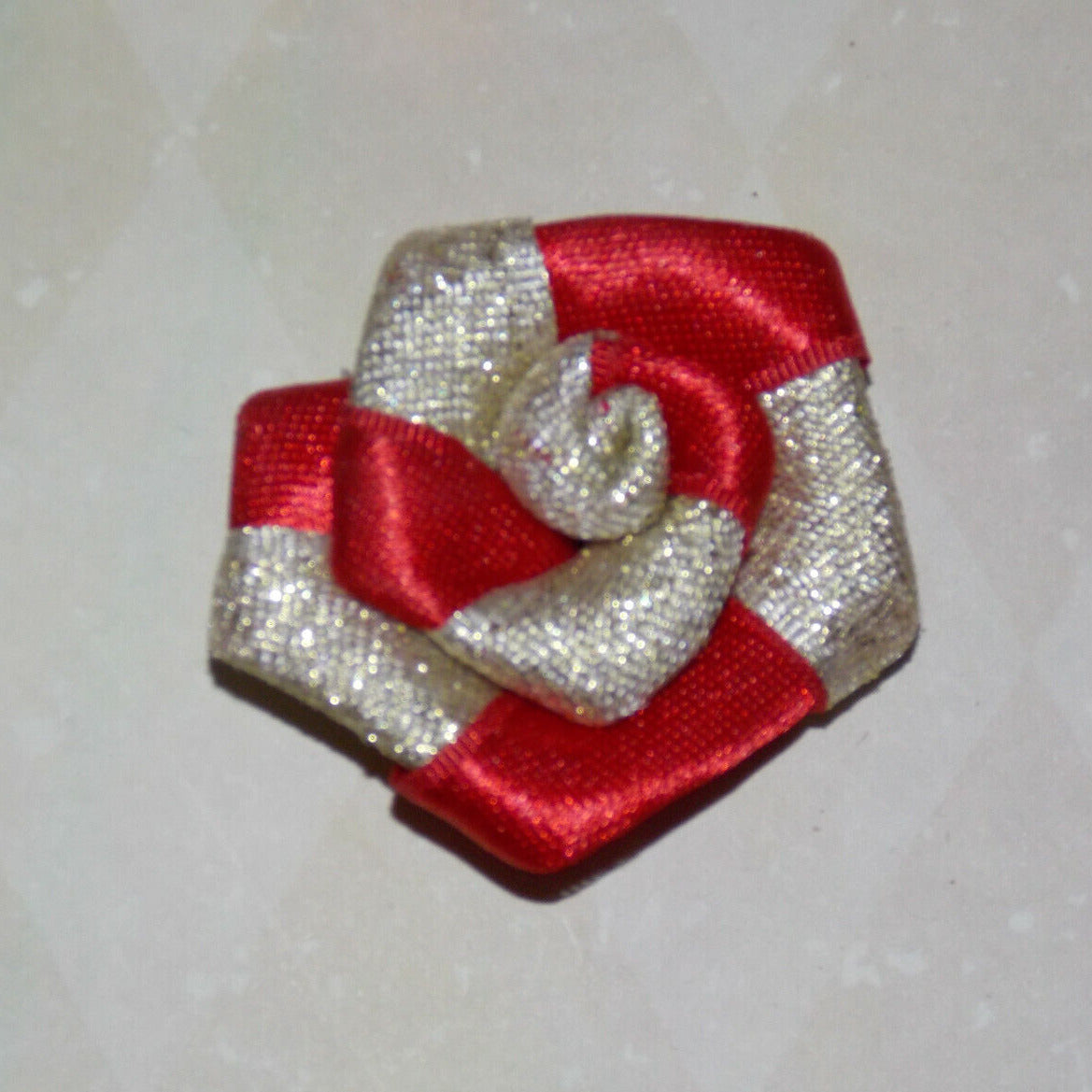 A lovely flower patch made with gold glitter ribbon with red satin ribbon that can be sewn or glued on. Let your creativity shine with our stunning gold glitter ribbon flower applique! Handmade with care, this patch features a beautiful combination of gold glitter and red satin ribbon to add a touch of elegance to any fabric or accessory. Whether you choose to sew or glue it on, our flower applique is sure to catch the eye and elevate your style. Perfect for adding a pop of color and texture to any project, our applique is a must-have for any craft or fashion enthusiast. Don't settle for ordinary, choose our gold glitter ribbon flower applique to truly make a statement!