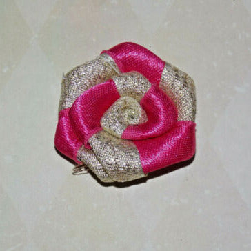 1x Gold glitter rose pink 4cm ribbon flower applique