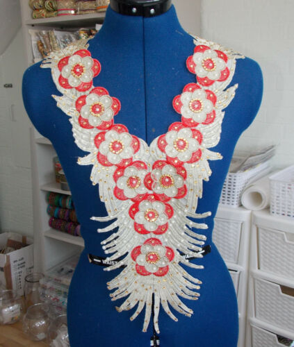 1x gold red embroidered applique crystal mirror collar/ neckline