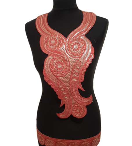 1x rust gold embroidered sequin applique collar/ neckline applique