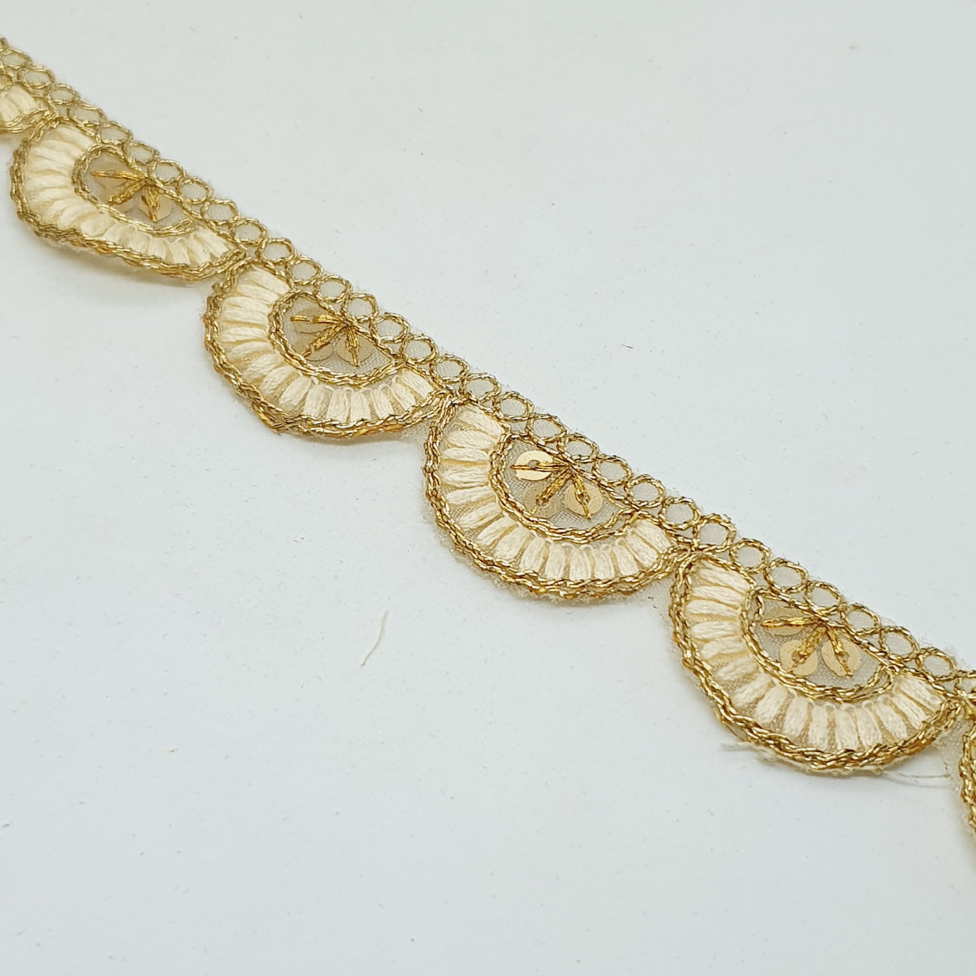 25mm gold and cream embroidered scalloped edge ribbon trim lace with sequins