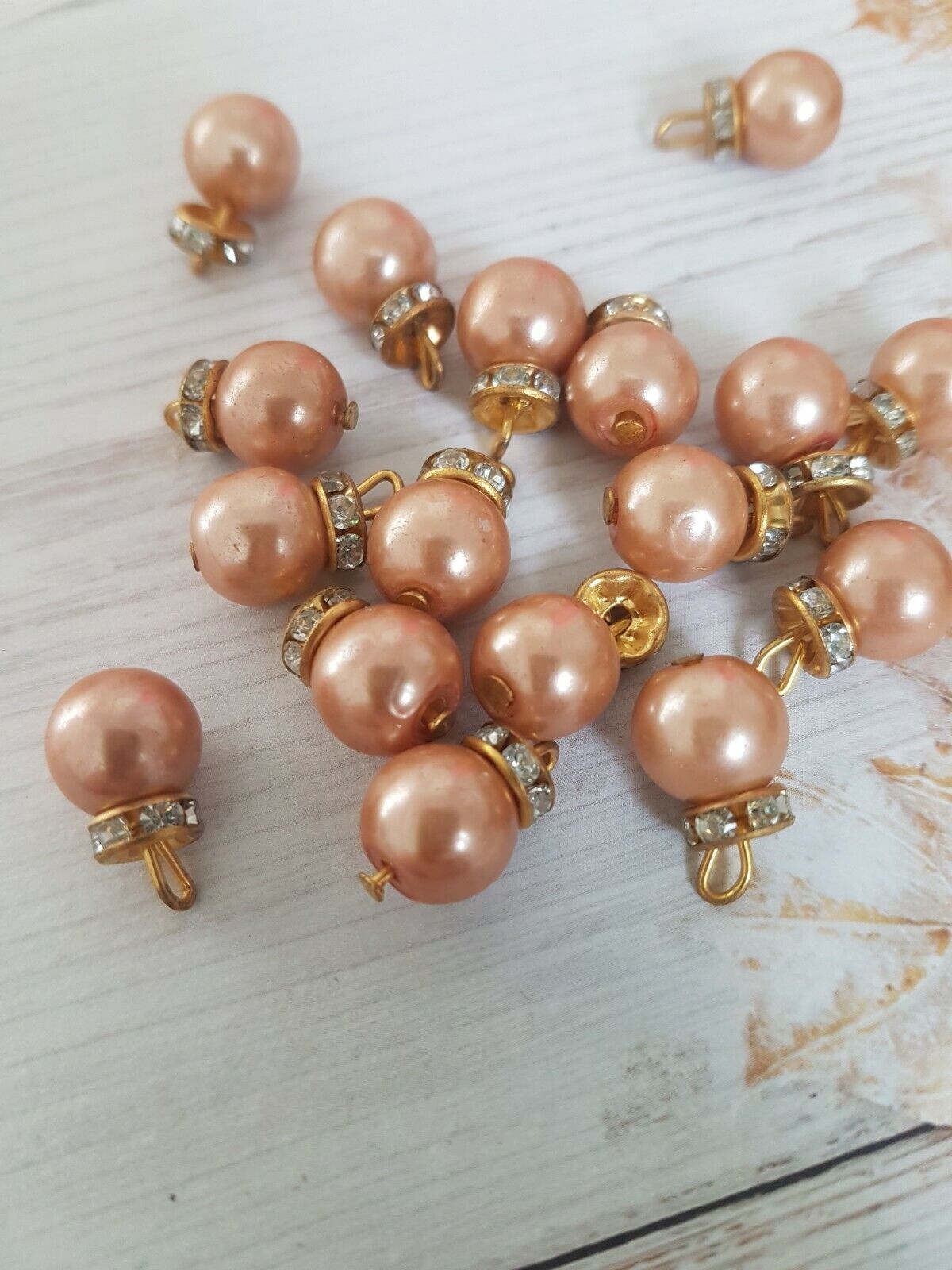 5x 15mm ROSE GOLD PEARL bead crystal gem dress button rhinestone