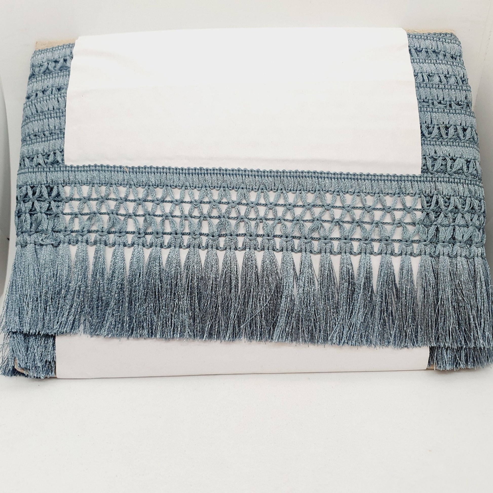 A lovely tassel fringing in slate grey. Adds drama and movement. Get ready to elevate any outfit with the mesmerizing 9cm drop fringing. This fringing is sure to add a touch of glamour and movement to your wardrobe. Ideal for clothing or soft furnishings.