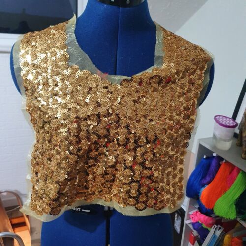 A beautiful applique with sequins embroidered on gold net. GOLD.