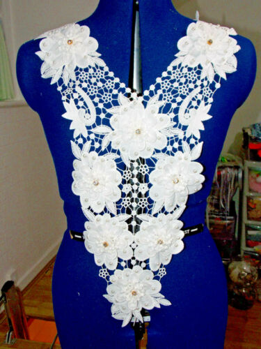 1x white embroidered lace applique patch/ collar/ neckline with crystals