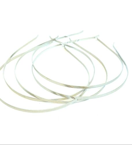 Silver base metal alice bands, 4mm wide. Very comfortable and ready to wear as they are but ideally used for decorating. They are a base to be turned into tiaras etc.